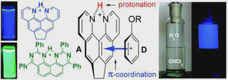 Proton-induced fluorescence in modified quino[7,8-h]quinolines: dual sensing for protons and π-donors