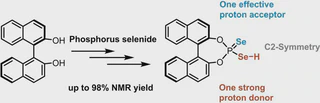 The activation of poorly reactive substrates via strong chiral acids is a central topic in asymmetric ion pair catalysis these days. Despite highly successful scaffolds such as N-triflylphosphoramides, these catalysts either lack C2-symmetry or provide multiple H-bond acceptor sites, leading to lower ee values for certain reactions. We present BINOL-based diselenophosphoric acids (DSA) as an extremely promising alternative. Using an intertwined approach of synthesis and NMR studies, we developed a synthetic approach to DSA with up to 98 % NMR yield. The obtained acids provide both very high proton donor and proton acceptor properties, a bifunctionality, which is key to catalytic applications. Indeed, first reactivity test proved the much higher acidity of DSA and its ability to initiate Mukaiyama–Mannich reaction and protodesilylation of silyl ethers. Together with their C2-symmetry, the single donor and single acceptor situation, the decreased tendency of self-association, and the straightforward synthesis with potential 3,3’-substitution, the DSA provide all features ideal for the further development of ion pair catalysis.